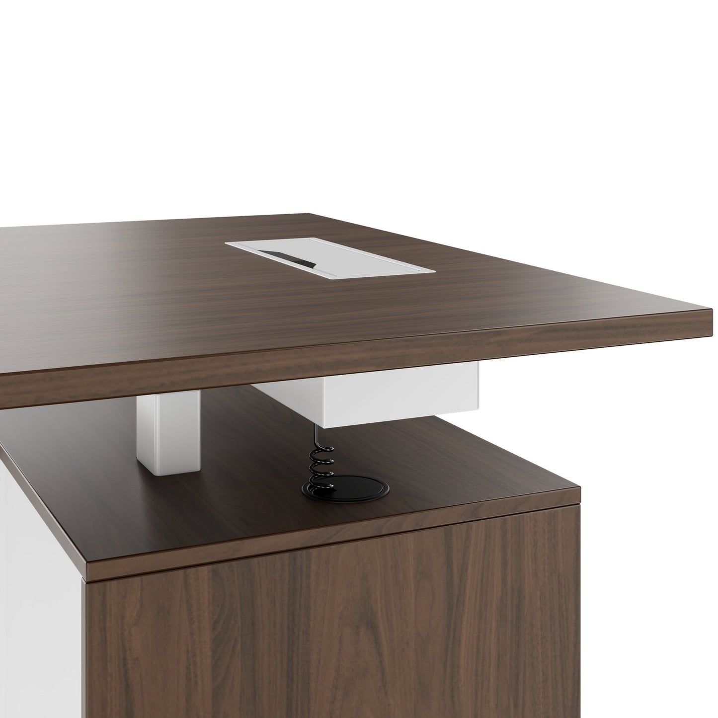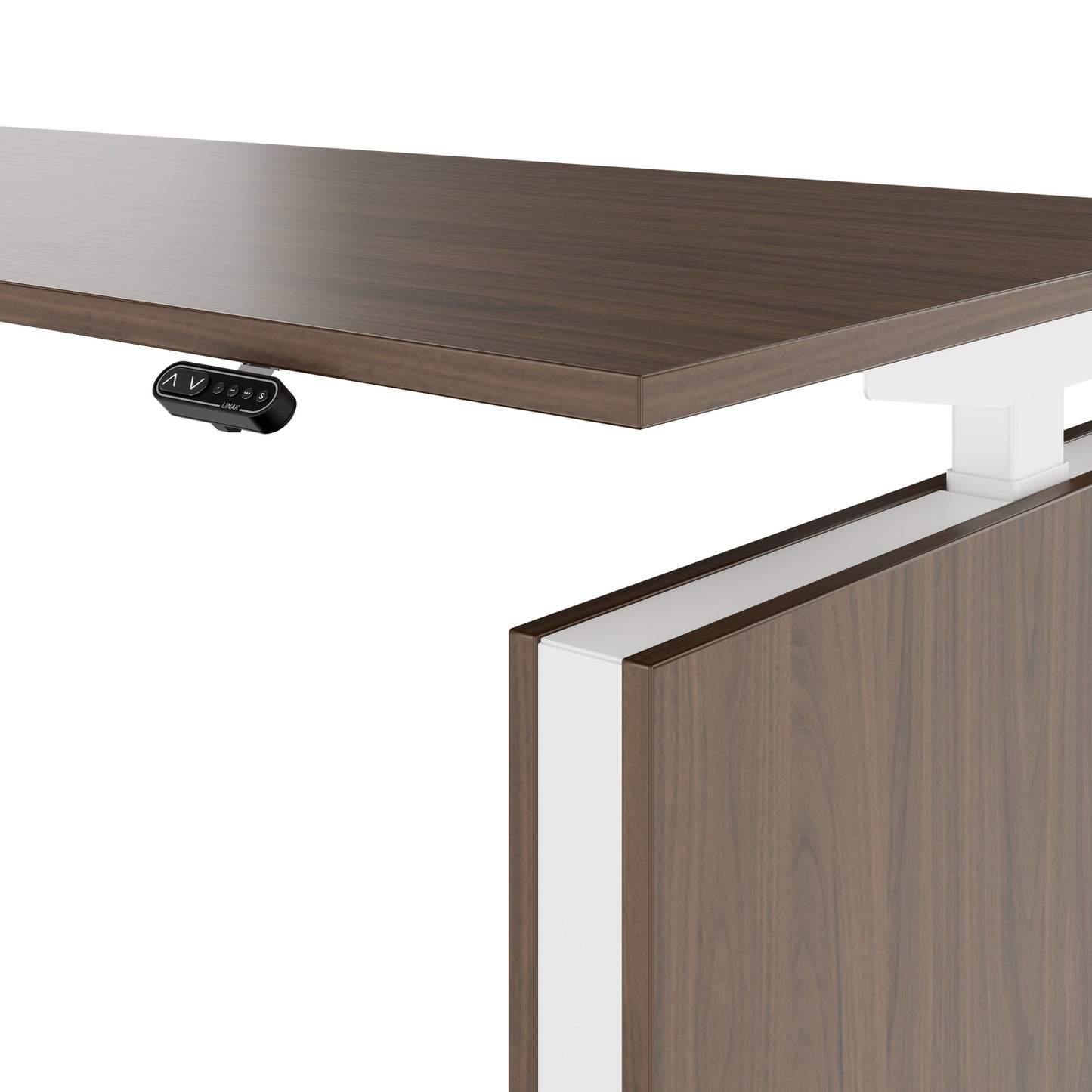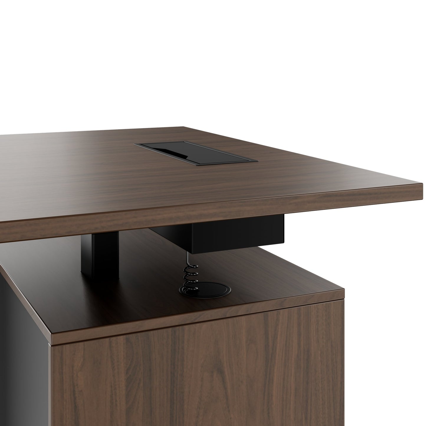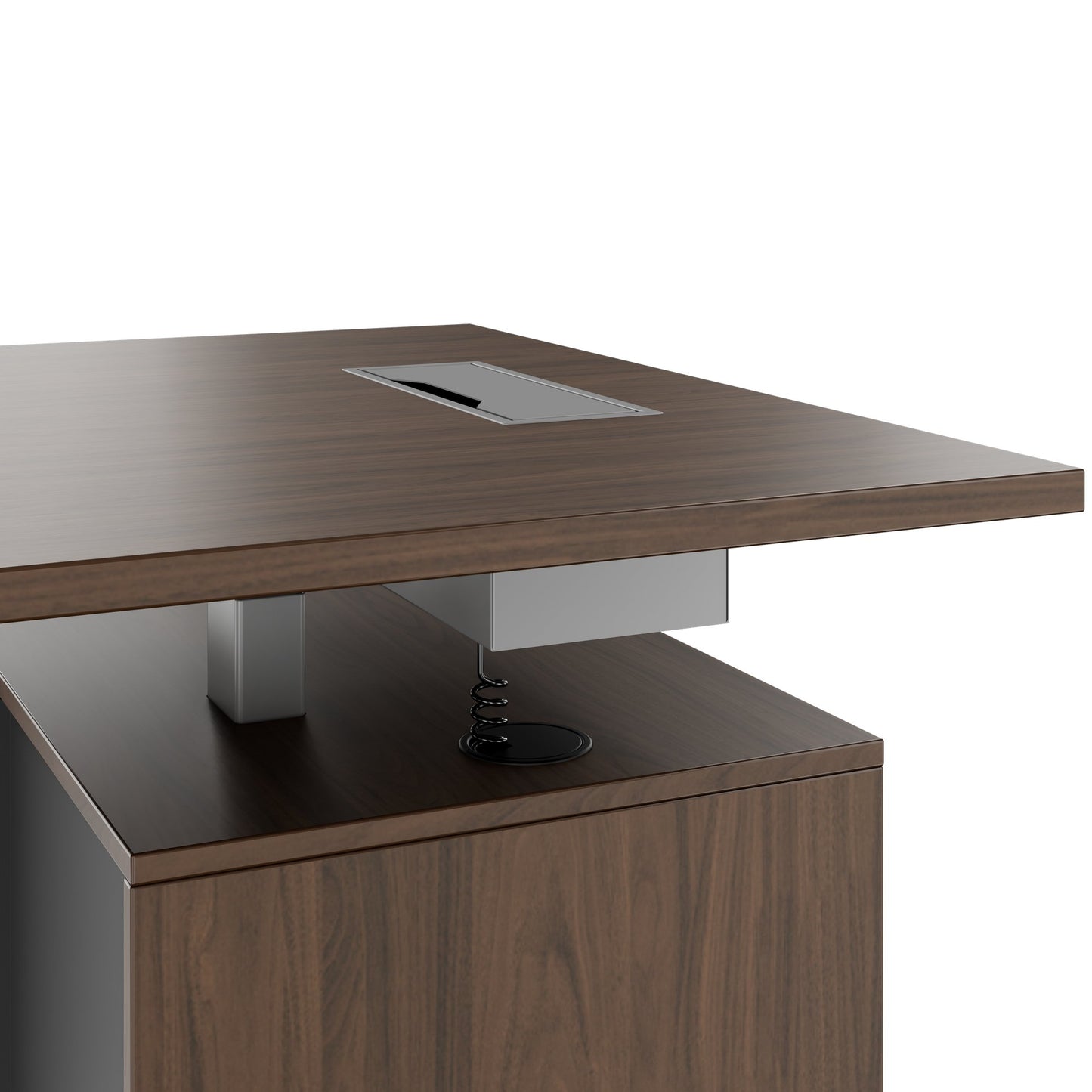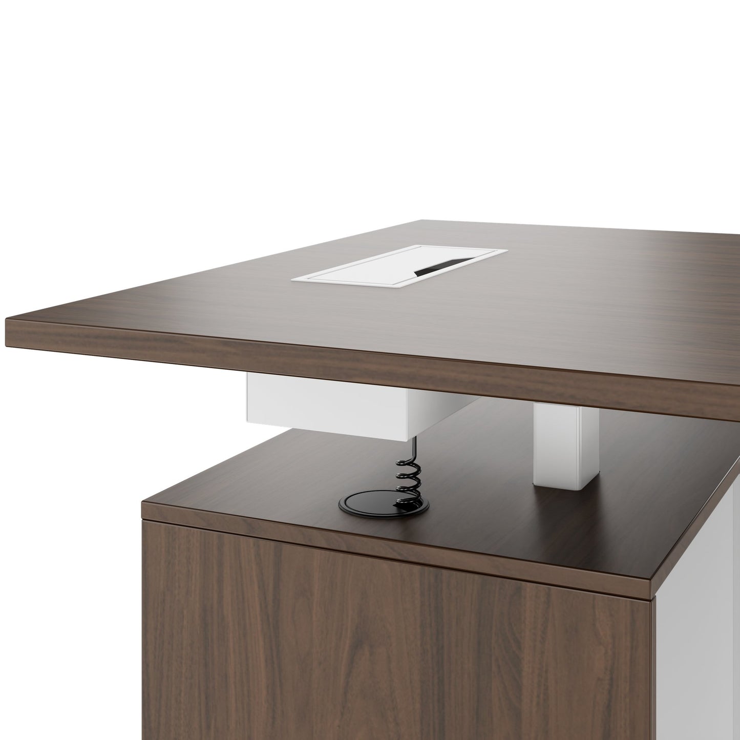 Entdecke den höhenverstellbaren Chefschreibtisch der Extraklasse, der mit einer beeindruckenden 10 Jahres-Garantie überzeugt. Das integrierte Sideboard mit abschliessbarer Schublade bietet dir Sicherheit und Ordnung. Dank der 2 LINAK-Motoren erlebst du einen sanften Soft Start-Stopp Mechanismus sowie einen zuverlässigen Anti-Kollisionssensor. Speichere deine bevorzugten Positionen mithilfe der Memory-Funktion mit 3 Speicherplätzen ab. Zusätzlich punktet der Schreibtisch mit einer in die Tischplatte integrierten Vierfach-Steckdosenleiste – für maximale Flexibilität und Produktivität!