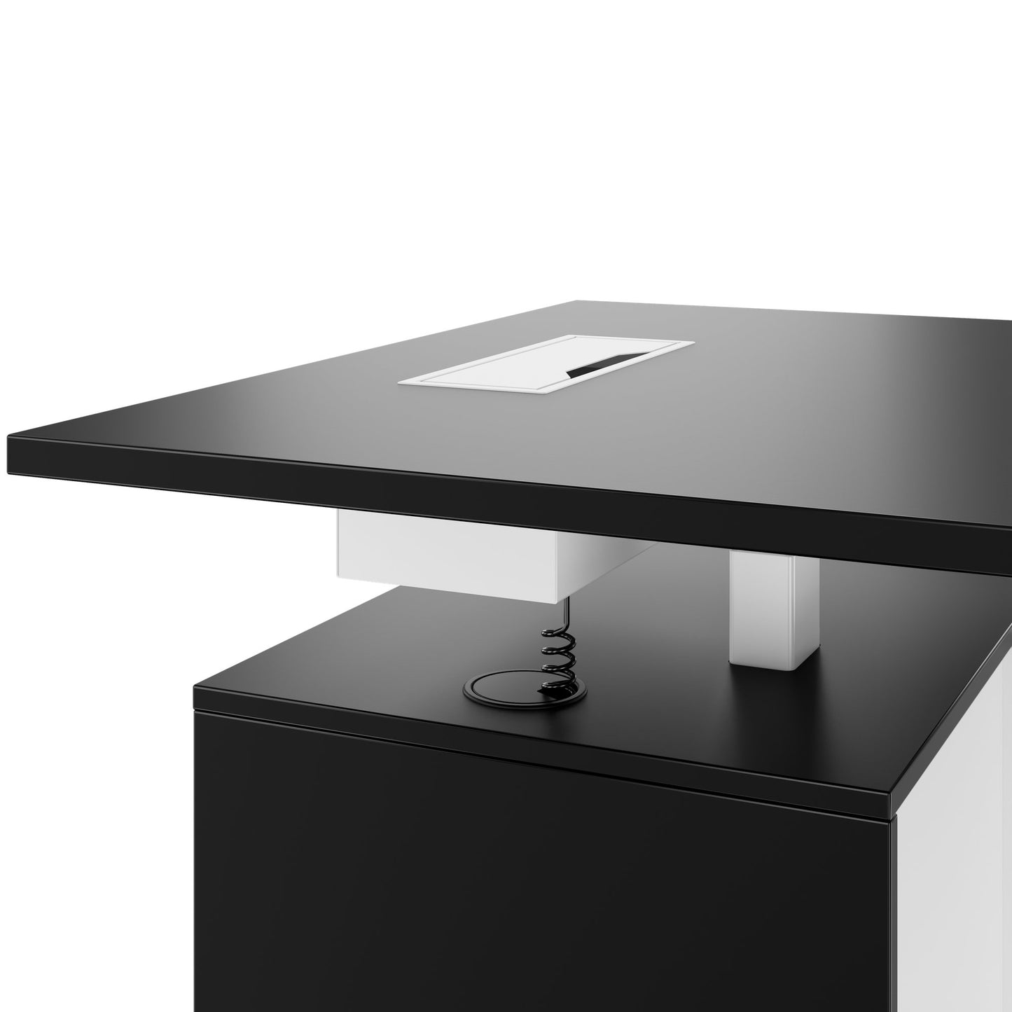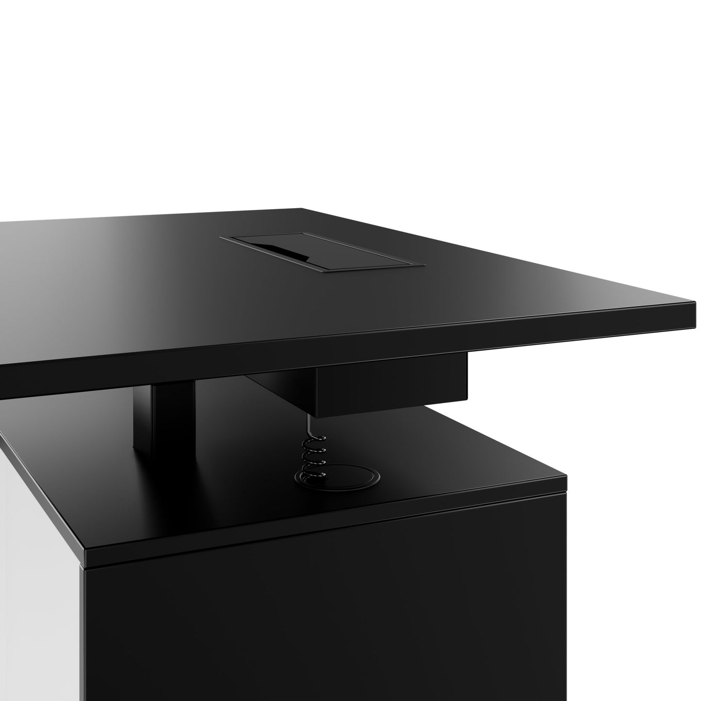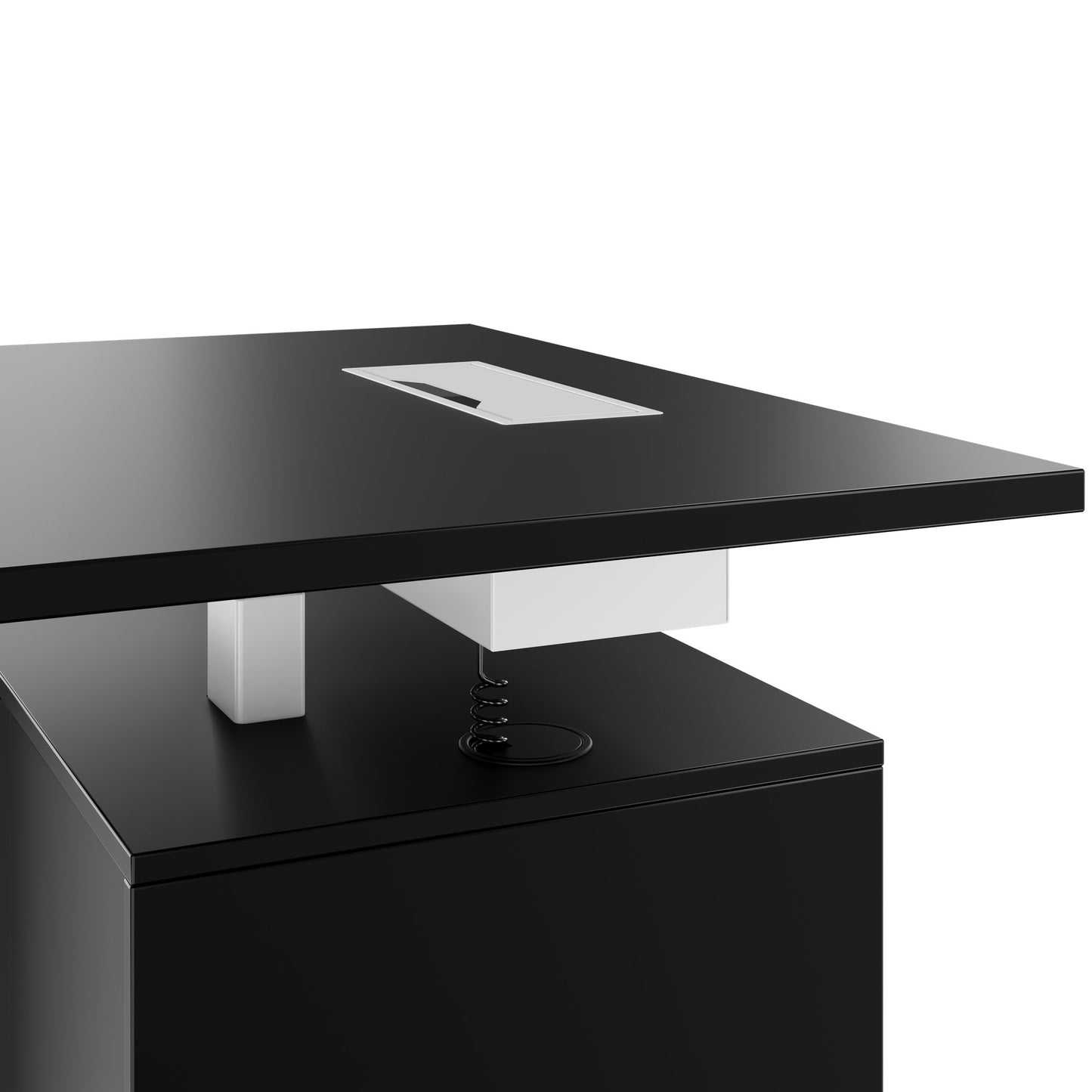 Eine Ablage, die sich fast wie von selbst regelt? Das ist dank des integrierten Sideboards mit dem Push-to-Open-System an den Türen sowie voll ausziehbaren Schubladen endlich möglich. Zum Schließen genügt ein leichter Schubser, damit die Soft-Close-Mechanik für ein automatisches Zuziehen der Schubladen sorgt. Sicher verstauen können Sie Ihre Habseligkeiten in der abschließbaren Schublade des Sideboards. Das Schloss ist seitlich angebracht und damit kein Hindernis, während Sie am Schreibtisch arbeiten.