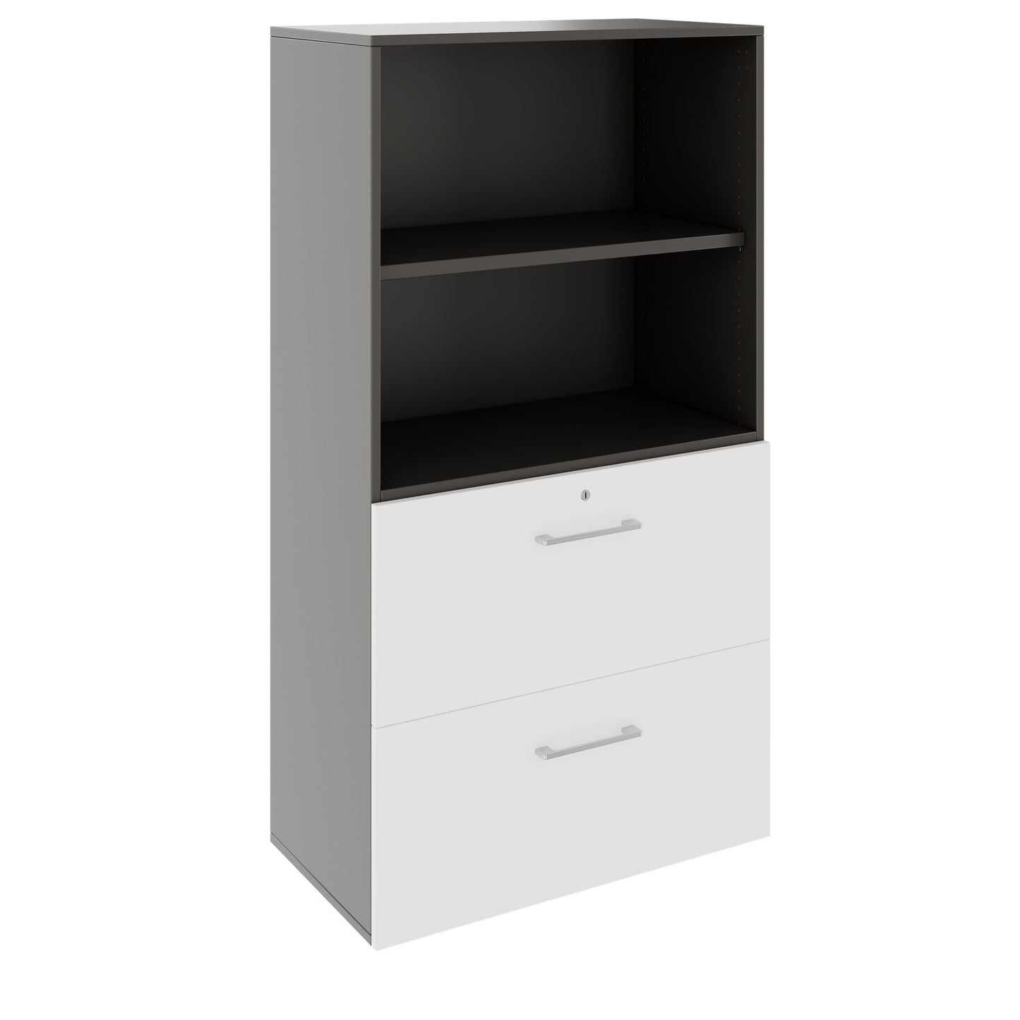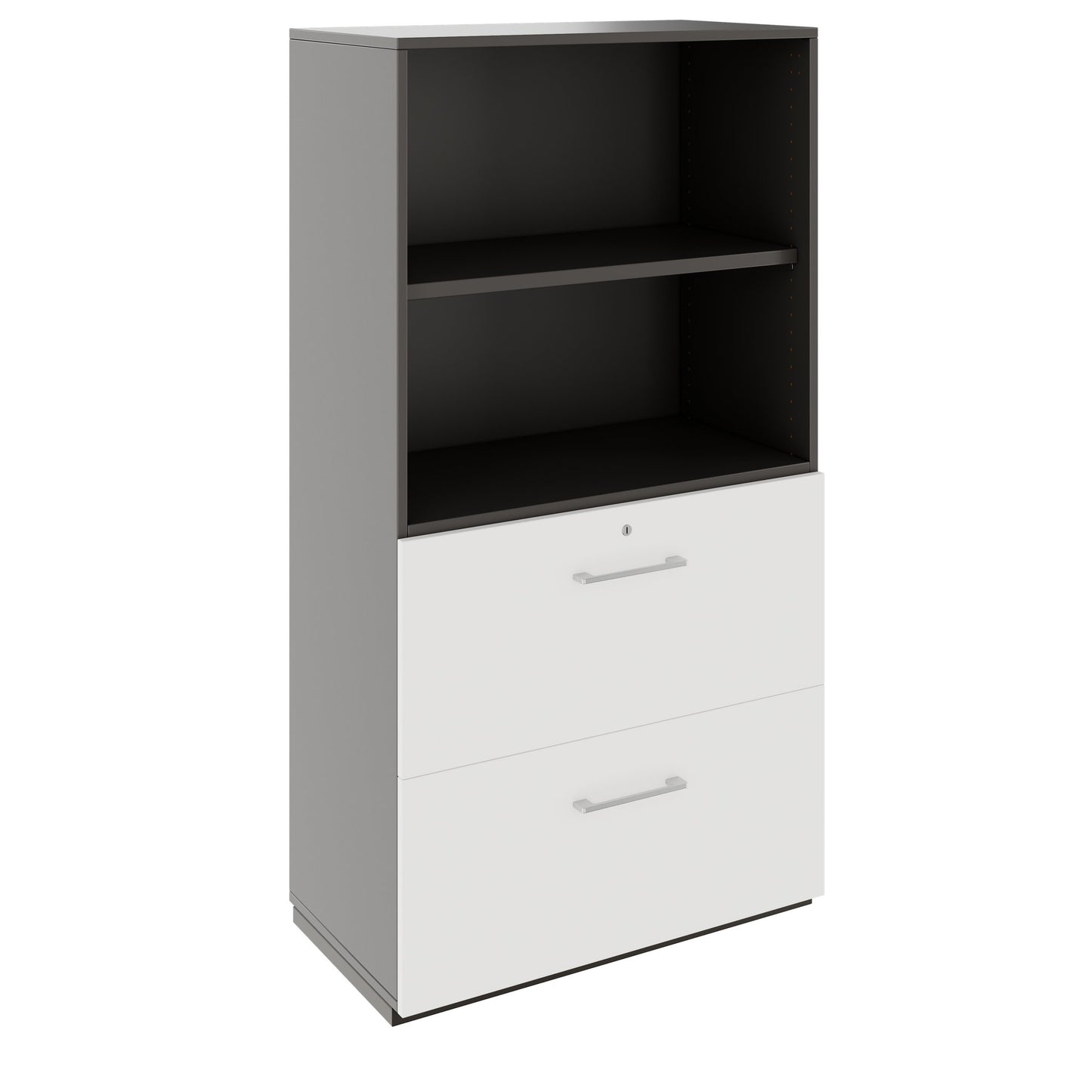 4 OH, 800 x 1510 mm, verleimter Korpus, mit Regal, Graphit / Weiß