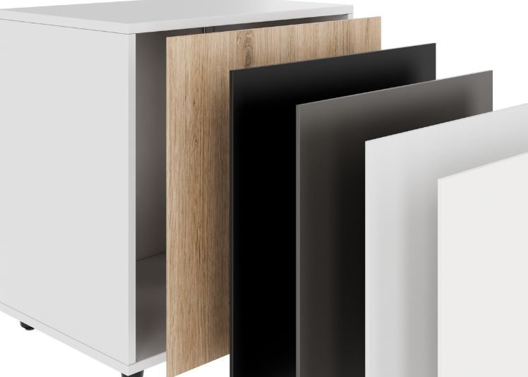 Die 8 mm starke, eingenutete Rückwand macht den PRO Schiebetürenschrank besonders stabil und langlebig. Dank der beidseitigen Dekoroberfläche sieht er nicht nur von vorne gut aus, sondern ist auch ideal für die freie Platzierung im Raum – perfekt für moderne Bürokonzepte.
