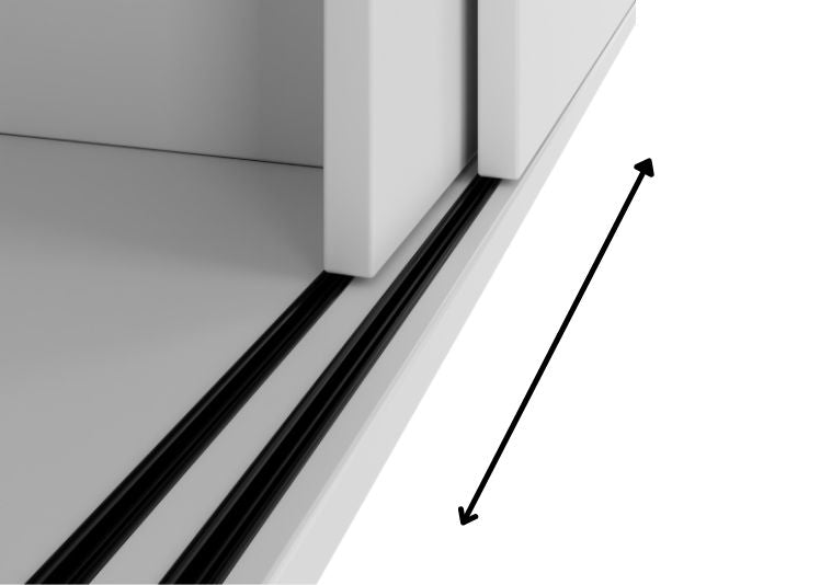 Die PRO Schiebetürenschränke sind für eine komfortable und platzsparende Nutzung konzipiert. Hochwertige Laufrollen mit Kugellagern sorgen für ein besonders sanftes und leises Gleiten der Türen. Anders als Flügeltüren benötigen sie keinen Schwenkraum, sodass der Schrank auch in engen Räumen oder Ecken optimal genutzt werden kann. Eine durchdachte Lösung für maximale Raumeffizienz und einfachen Zugriff auf den Inhalt.