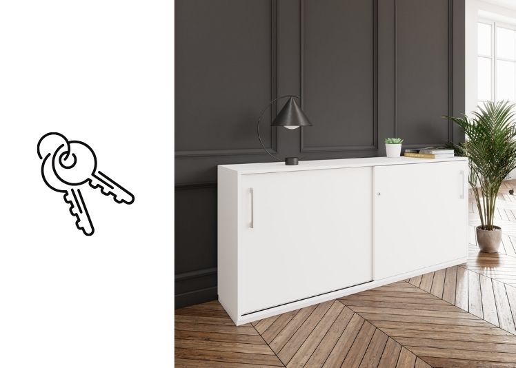 Der PRO Schiebetürenschrank schützt deine Dokumente nicht nur vor Staub, sondern sorgt auch für eine vertrauliche Aufbewahrung. Dank des hochwertigen Lehmann® Schliesssystems kannst du den Schrank jederzeit sicher verschliessen – so bleiben sensible Unterlagen geschützt und unzugänglich für Unbefugte. Ideal für Büros, in denen Sicherheit und Datenschutz an erster Stelle stehen.