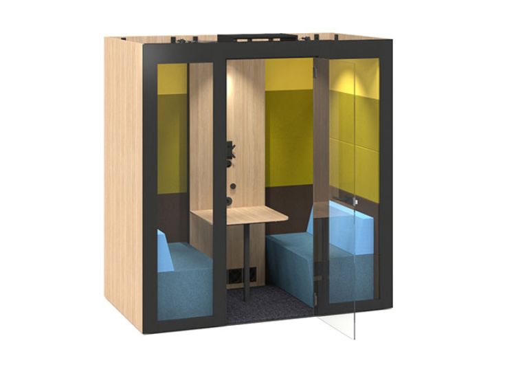 Vier-Augen-Gespräche im Grossraumbüro führen oder eine Teamarbeit abschliessen, kann eine Herausforderung sein. Mit dem Silent Room M bleibst du mitten im Geschehen und profitierst dennoch vom hervorragenden akustischen Schutz der schallabsorbierenden Wände.