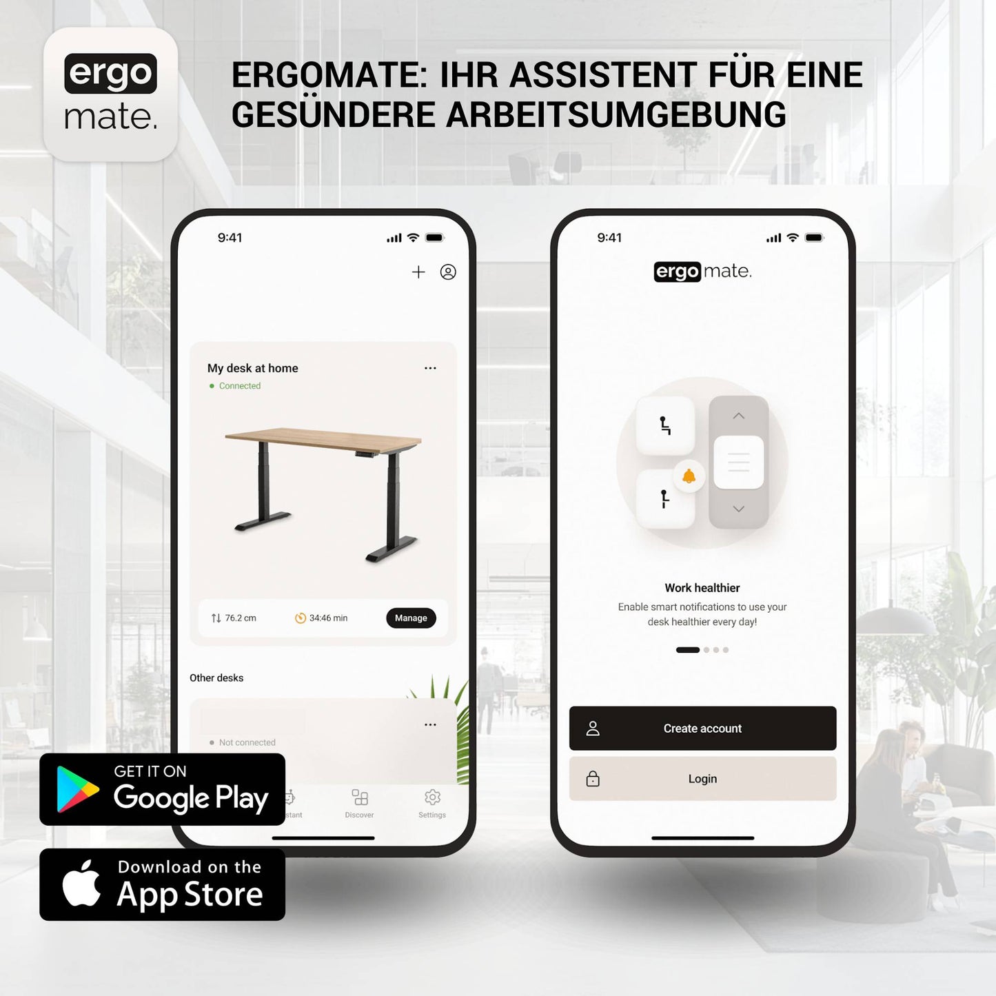 Beim TELDRA Pro hast du die volle Kontrolle – ob per Bedienpanel oder App. Das smarte LCD-Display zeigt die aktuelle Höhe an und erinnert dich auf Wunsch daran, regelmässig aufzustehen. Vier Speicherplätze sorgen dafür, dass deine perfekte Sitz- oder Stehposition immer nur einen Knopfdruck entfernt ist. Praktische USB-A- und USB-C-Anschlüsse laden deine Geräte direkt am Schreibtisch, und der Anti-Kollisionssensor erkennt Hindernisse automatisch und verhindert so mögliche Unfälle.