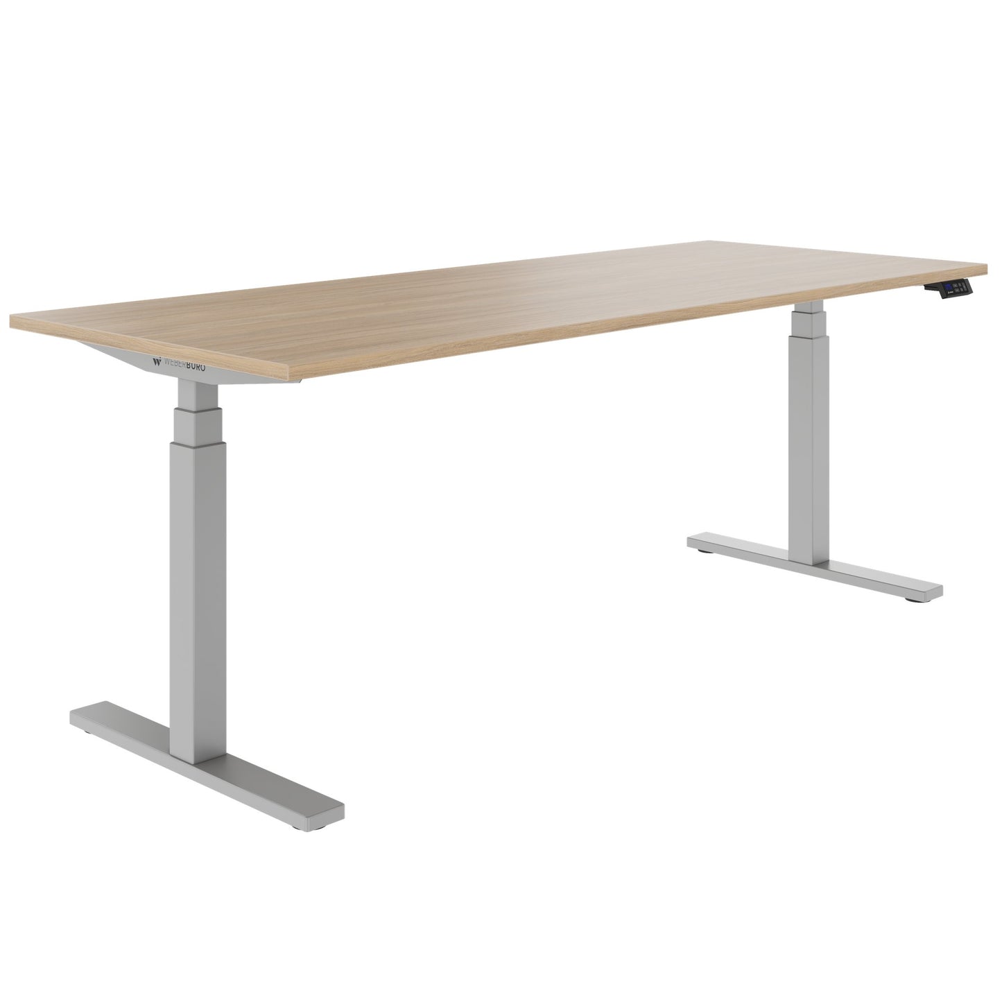 Zwei kraftvolle Motoren bringen den TELDRA Office in Schwung – und das mit beeindruckender Leichtigkeit. Ob Monitore, Aktenstapel oder technisches Zubehör, bis zu 200 kg hebt er mühelos. Mit 40 mm pro Sekunde wechselst du blitzschnell zwischen Sitzen und Stehen, ohne aus dem Flow zu kommen. Und dank des pulverbeschichteten T-Fuss-Gestells bleibt nicht nur dein Arbeitsplatz stabil, sondern sieht auch noch modern aus.