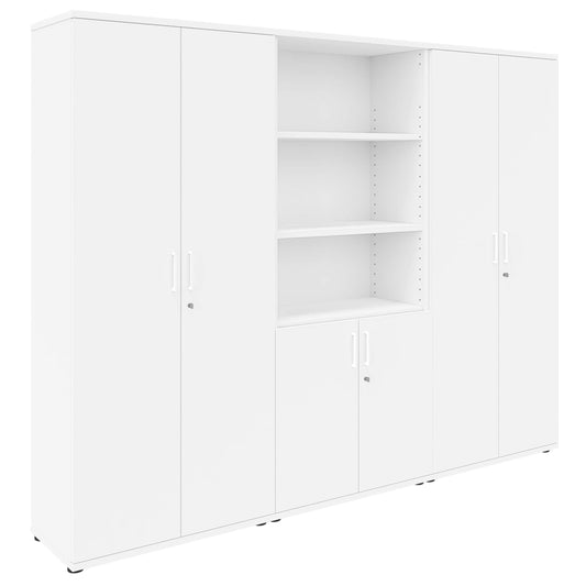 Der Kombischrank aus der Serie UNI bietet Ihnen gute Material- und Verarbeitungsqualität zu einem erstaunlich günstigen Preis. Mit ihm fällt Ihnen das Ordnung halten und Verstauen von Utensilien und Dokumenten leicht. Er sollte in keinem Büro fehlen. Er bietet Platz für 5 Ordnerhöhen (OH). Die Fachböden sind dank der durchgängigen Lochreihenbohrung im 32-Millimeter-Raster flexibel einsetzbar und können dadurch Ihren Bedürfnissen angepasst werden. Eine feste Arretierung sichert die Fachböden gegen ungewolltes Herausziehen.